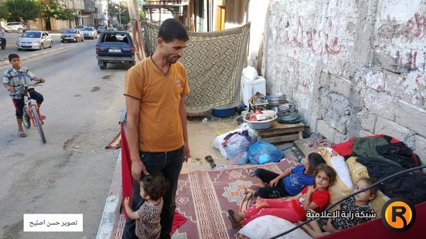اضطر المواطن نعيم اللحام هو وعائلته افتراش أرصفة احد شوارع خانيونس جنوب قطاع غزة، واتخاذها مسكناً له لعدم قدرته على دفع ايجار شقة.