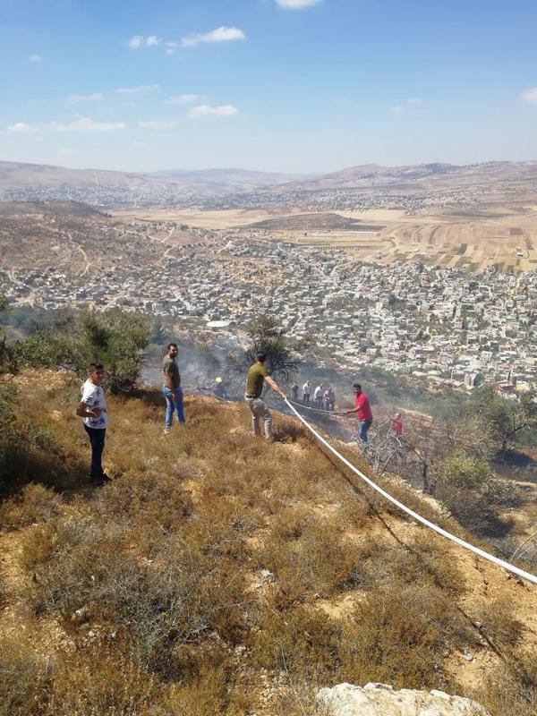 أضرم مستوطنو مستوطنة "إيتمار" المقامة على أراضي قرى شرق نابلس، اليوم الجمعة، النار في عشرات الدونمات بجبل الشراربة ببلدة بيت فوريك.