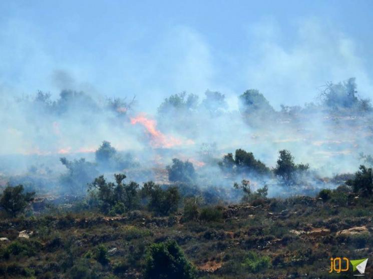 مستوطنون يحرقون عشرات الدونمات في بيت فوريك