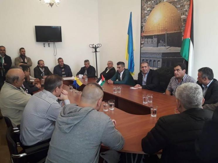 وبعد انتهاء الوقفة، استقبل سفير فلسطين لدى أوكرانيا محمد الأسعد، المشاركين في الوقفة في مقر السفارة، حيث قدم الشكر لهم وأكد أن الصمود الفلسطيني والتمسك بالثوابت الوطنية، والموقف العربي الرافض لتجاوز قضية القدس والشرعية العربية أجهض ما يسمى بـ"صفقة القرن"، وأن ما يجري من طروحات وأفكار وأوهام عبر ما يسمى "صفقة القرن" هدفه بالأساس إلغاء الهوية الوطنية الفلسطينية، وقتل المشروع الوطني المتمثل بإقامة دولتنا الفلسطينية المستقلة وعاصمتها القدس الشرقية، وليس كما تحاول أميركا ترويجه عن إحداث تقدم في عملية السلام.