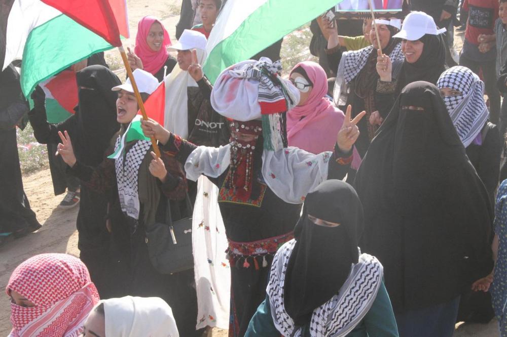 انطلقت مسيرة نسائية في مخيم العودة شرق مدينة غزة، الثلاثاء، ضمن فعاليات نسوية بعنوان "فلسطينيات نحو العودة وكسر الحصار" بالتزامن مع مسيرات حاشدة للنساء في أراضي الـ 48 ولبنان والأردن والمغرب.