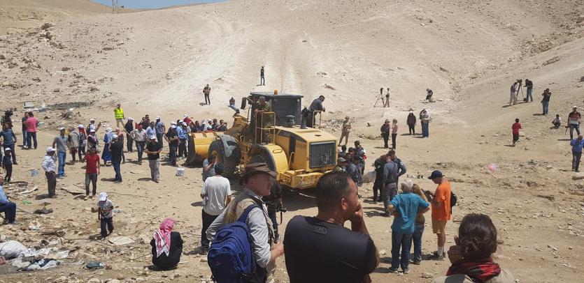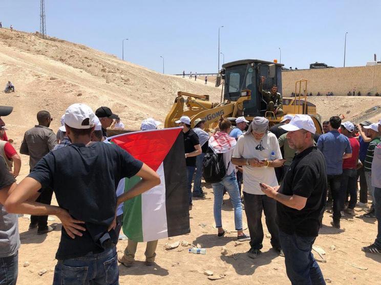 وتصدى نشطاء المقاومة الشعبية، وأهالي الخان الأحمر البدوي جنوب شرق القدس، اليوم الأربعاء، للجرافات ومنعوها من هدم المساكن.