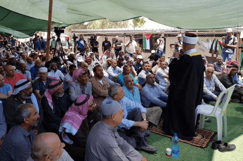 مواطنون يؤدون صلاة الجمعة على أراضي الخان الاحمر