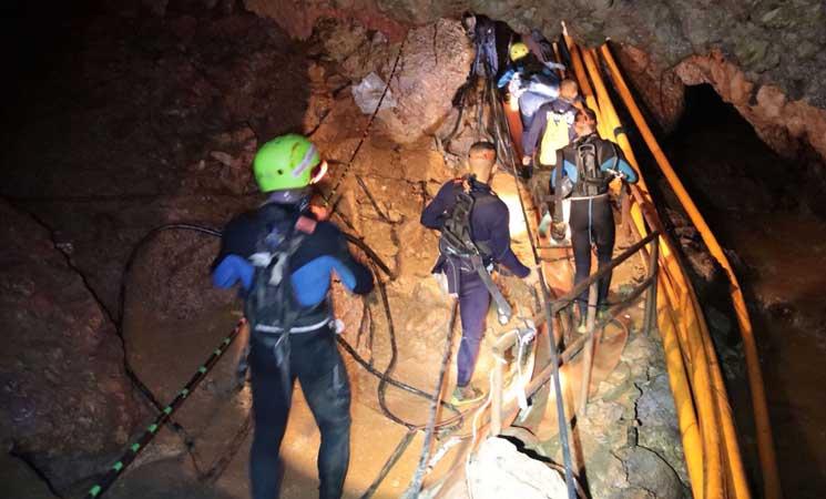 وقام فريق من الغواصين الأجانب والقوات الخاصة التايلاندية بإرشاد الصبية للخروج خلال عملية استمرت تسع ساعات عبر أنفاق بطول أربعة كيلومترات تقريبا غمرت المياه أجزاء منها بعدما حوصروا بالداخل لأكثر من أسبوعين.