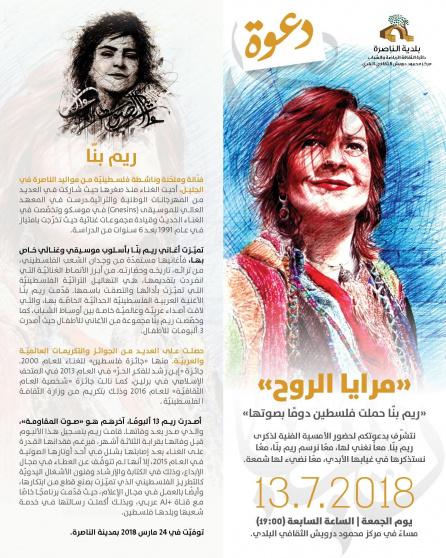 وتأتي الأمسية التي تحمل اسم "مرايا الروح" ضمن مشروع مركز محمود درويش الثقافي البلدي، في الاحتفاء بالشخصيات التاريخية والفنيّة والوطنية، وستُستذكرُ فيها شخصية ريم بنّا الثقافية والفنيّة والوطنية.