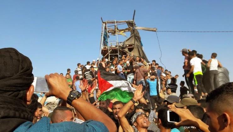 وانطلقت اليوم مسيبرات العودة في جمعتها الـ 17 التي اطلقت عليها الهيئة الوطنية لمسيرات العودة جمعة "لن تمر المؤامرة على حقوق اللاجئين يا وكالة الغوث" والتي أصيب خلالها عشرات المواطنين برصاص الاحتلال.
