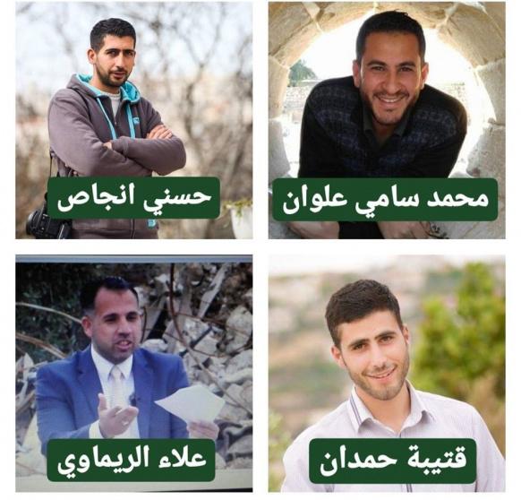 كما اعتقلت قوات الاحتلال 4 صحفيين من مدينة رام الله، وهم: مدير فضائية القدس في الضفة علاء الريماوي، ومراسلها محمد سامي علوان، ومصورها حسني انجاص، والصحفي قتيبة حمدان، بعد مداهمة منازلهم.