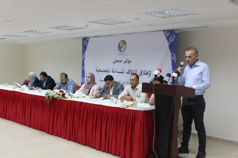 ضمن برنامج شركاء من أجل المساءلة المجتمعية المنفذ من قبل مؤسسة تعاون لحل الصراع، تم إطلاق ائتلاف المساءلة المجتمعية في مؤتمر صحفي جرى يوم السبت الموافق 4/8/2018 في رام الله. وضم المؤتمر أعضاء سكرتاريا الائتلاف وممثلين عن مؤسسات المجتمع المدني العاملة في مجال المساءلة المجتمعية.