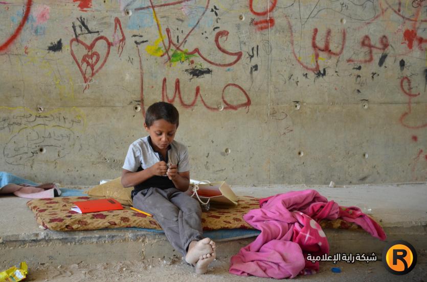 طفل يسكن في الخان الاحمر، الاحتلال يضع عينه على خيمته التي يسكن فيها هو وعائلته ويهدد بتهجيره منها وهدمها لإقامة المستوطنات.