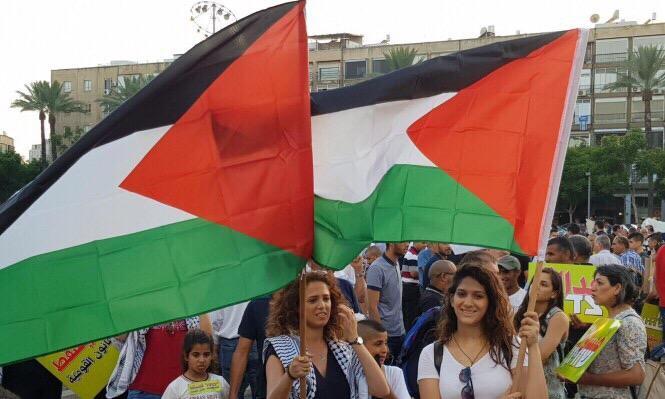 احتشد الآلاف من فلسطينيي الداخل في مدينة تل أبيب، مساء اليوم، السبت، للمشاركة في المظاهرة التي دعت إليها لجنة المتابعة العليا للجماهير العربية داخل الخطّ الأخضر، لإلغاء "قانون القوميّة" تحت شعاري "فليسقط قانون القومية" و"نعم للمساواة".