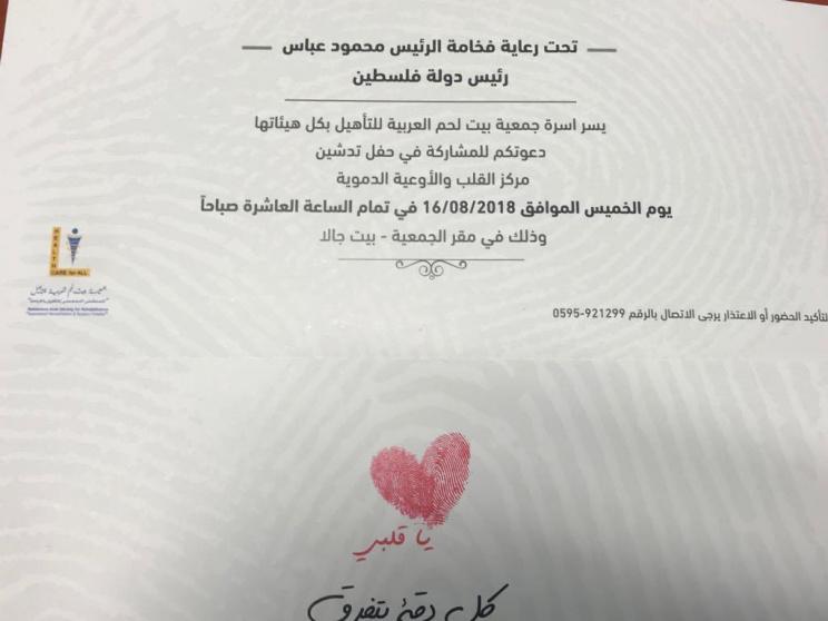 وتؤكد جمعية بيت لحم العربية للتاهيل انه و مع افتتاح مركز القلب والأوعية الدموية في جمعية بيت لحم العربية للتأهيل، سيتمكن المرضى الفلسطينيون للمرة الأولى من الحصول على علاج متقدم وعالي لأمراض القلب والأوعية الدموية القريبة من منازلهم.