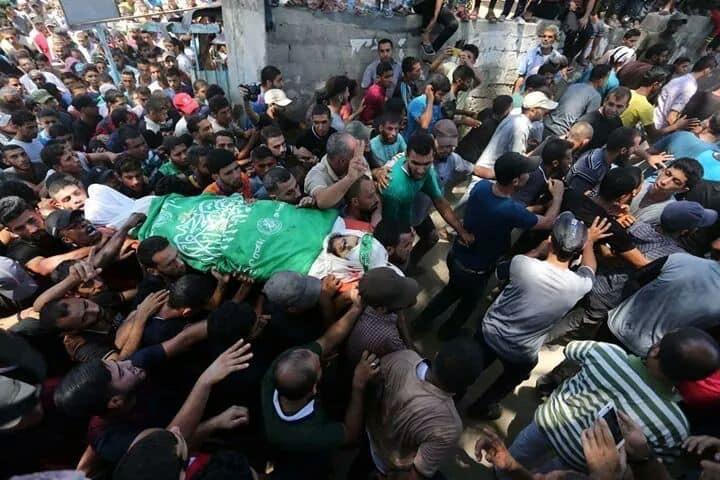 شيع أبناء قطاع غزة، اليوم السبت، جثماني الشهيدين كريم فطاير وسعدي معمر، اللذان استشهدا أمس الجمعة برصاص الاحتلال الإسرائيلي على الخط الفاصل شرق قطاع غزة.