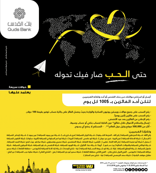 بنك القدس: حملة ترويجية لمستخدمي الحوالات السريعة " ويسترن يونيون"