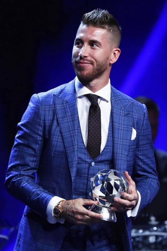 فاز الدولي الإسباني سيرجيو راموس، قائد فريق ريال مدريد الإسباني، بجائزة أفضل مدافع في بطولة دوري أبطال أوروبا عن موسم 2017/2018.