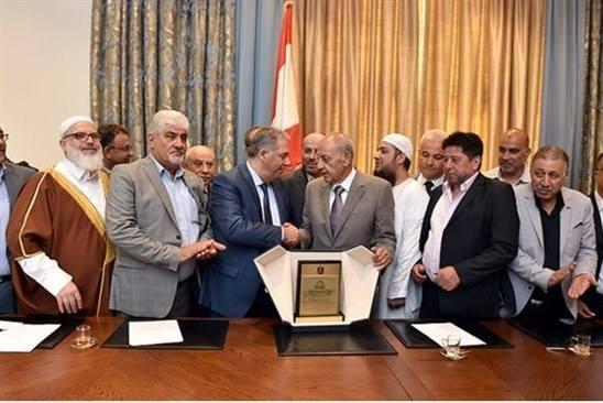 من جانبه اعلن امين سر حركة فتح في لبنان فتحي أبو العردات في تصريح باسم جميع الفصائل الوطنية والقوى الإسلامية بعد لقائه بري الالتزام بالوثيقة التي تهدف الى تعزيز العلاقات "الفلسطينية اللبنانية" و "الفلسطينية الفلسطينية".