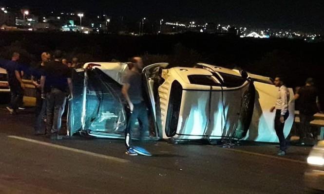 وتظهر الصور الواردة من المكان انقلاب السيارتين وخرابًا في جسمي المركبيتن.