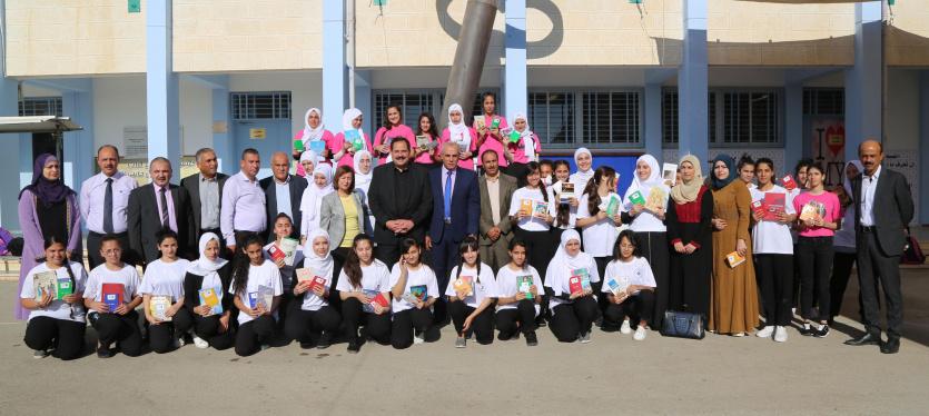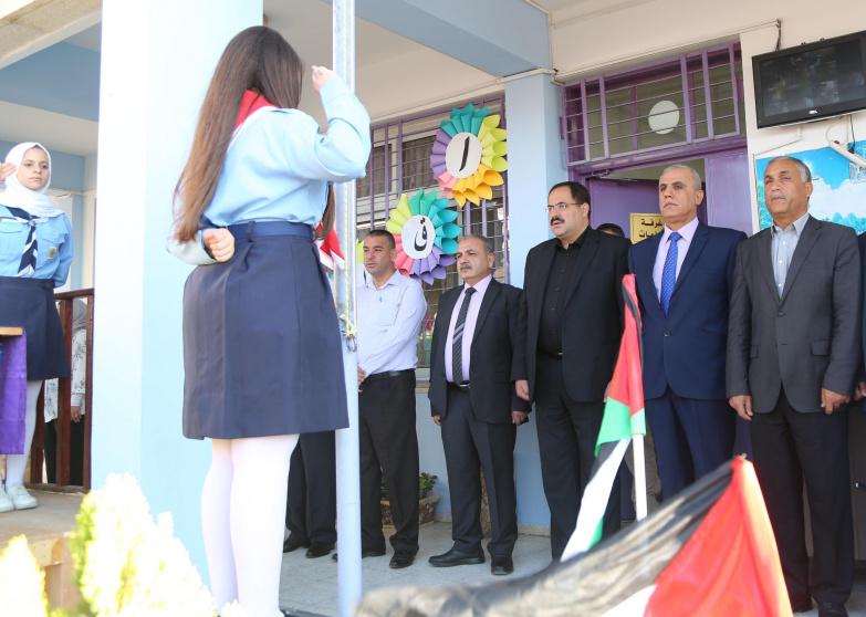 شارك وزير التربية والتعليم العالي د. صبري صيدم، اليوم السبت، في فعاليات الطابور الصباحي بمدرسة بنات العودة الثانوية بمديرية بيت لحم؛ والتي تشارك هذا العام في منافسات برنامج تحدي القراءة العربي في دبي المدرسة؛ وهي واحدة من خمس مدارس عربية تتنافس على اللقب، إذ جاءت زيارة الوزير للمدرسة في إطار دعمه ومساندته لها في هذه المنافسات.