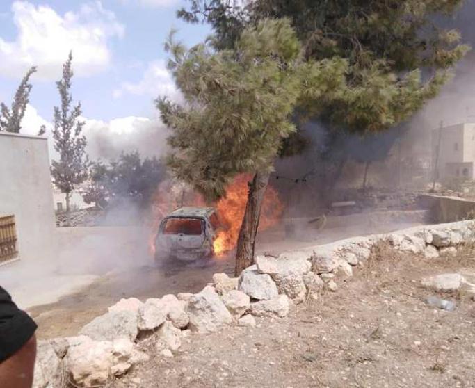حرق مركبة على خلفية الشجار