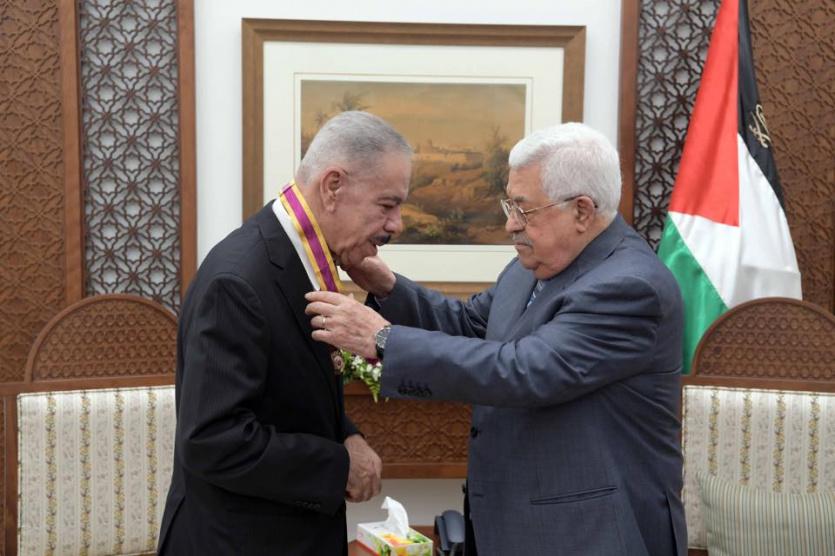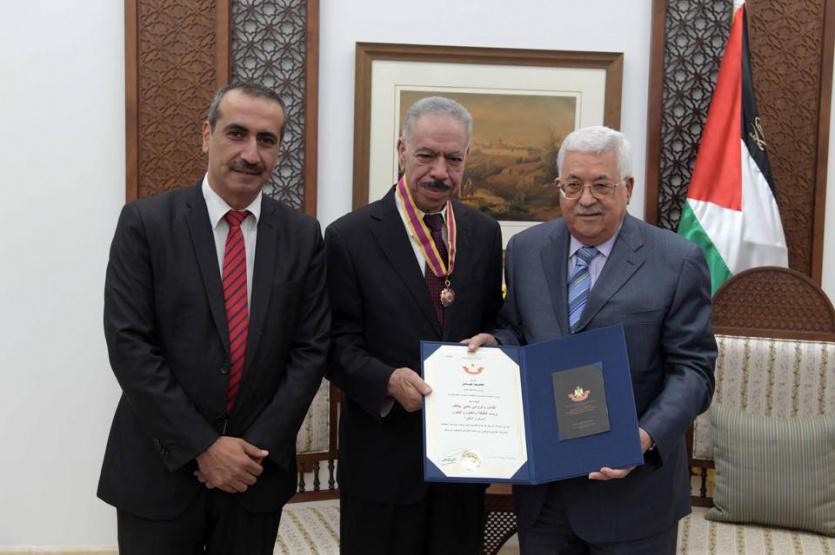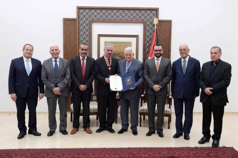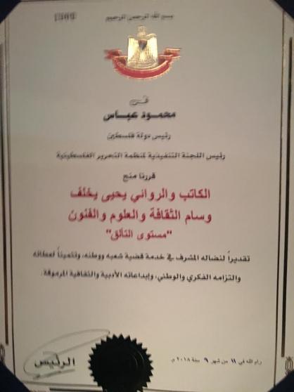 قلد الرئيس محمود عباس، الكاتب والروائي يحيى يخلف وسام الثقافة والعلوم والفنون "مستوى التألق".