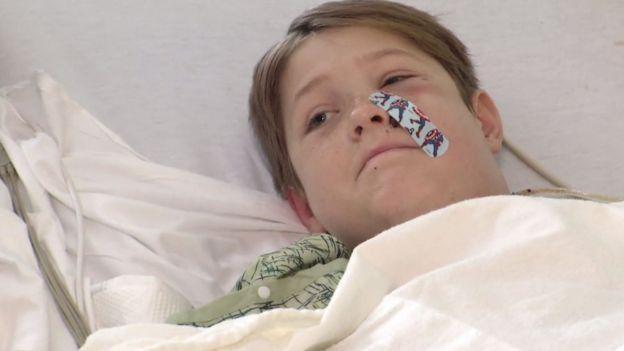 يتعافى طفل في العاشرة من عمره في المستشفى التي نُقل اليها لاستخراج سيخ لحم من رأسه، وكان خافيير كانغهام سقط من أعلى شجرة ووقع على الأرض على سيخ لحم اخترق رأسه.