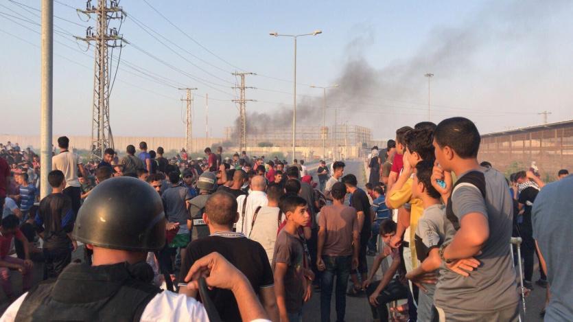 وكانت مظاهرة تضم الالاف من اهالي قطاع غزة وصلت الى المعبر تلبية لدعوة من الهيئة العليا لمسيرات العودة وكسر الحصار.