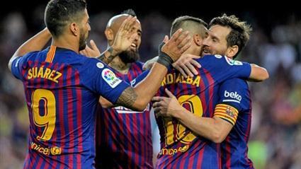 سجل ميسي ثلاثية (هاتريك) في الدقائق 32 و77 و87، وعثمان ديمبيلي 74.