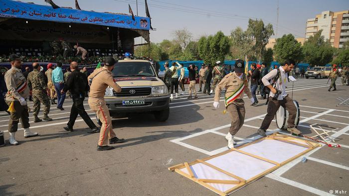 وكان مسلحون هاجموا عرضا عسكريا أقيم في الأهواز السبت في ذكرى الحرب الايرانية العراقية.