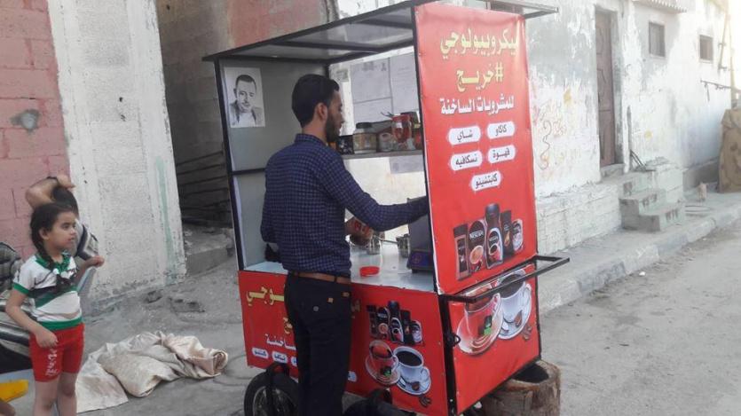 الشاب مقداد (26 عاما) أطلق على عربته اسم "ميكروبيولوجي خريج" في إشارة للتخصص الجامعي النادر في قطاع غزة، الذي تخرج منه عام 2016 من جامعة الأزهر بغزة.