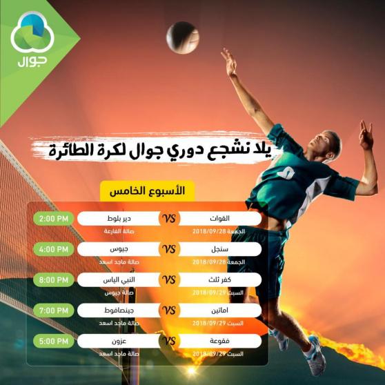 إعلان برنامج مباريات دوري جوال لكرة الطائرة للاسبوع الخامس