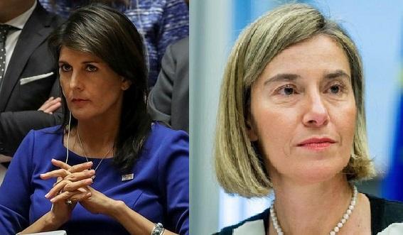 اتهمت المندوبة الأمريكية لدى الأمم المتحدة، نيكي هايلي، مفوضة الشؤون الخارجية للاتحاد الأوروبي، فيديريكا موغيريني، بالأنانية والغطرسة لسعيها إلى الحفاظ على الاتفاق النووي الإيراني.