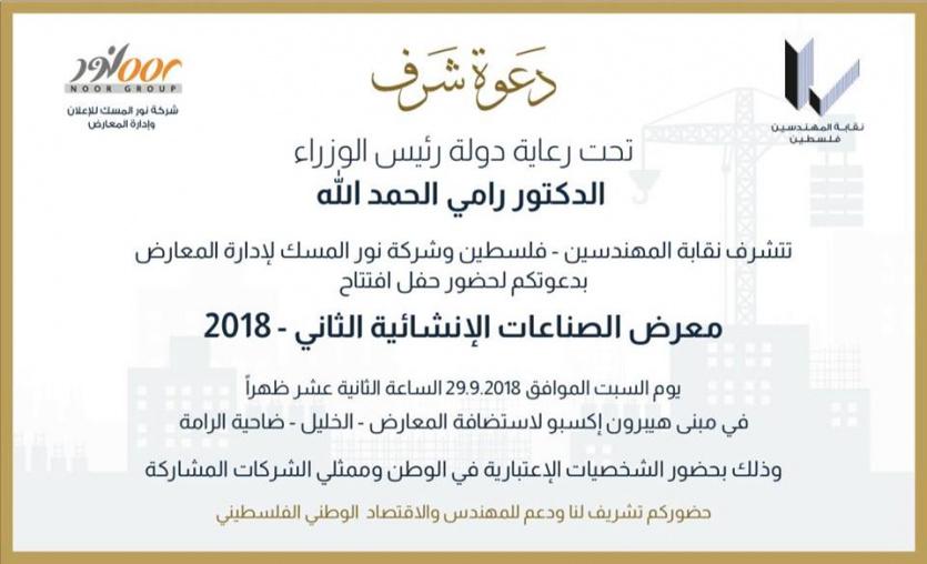 تستضيف أرض المعارض "هيبرون اكسبو" في مدينة الخليل من اليوم و حتى العاشرة من مساء الاثنين المقبل، فعاليات معرض الصناعات الإنشائية الثاني، بمشاركة 74 شركة فلسطينية منتجة أو مستوردة بصورة مباشرة.
