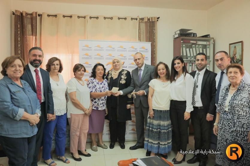 و سلّم أسعد إدارة الجمعية شيكاً لتغطية احتياجات الجمعية لبعض المواد الغذائية ولتوفير الخبز اللازم للمقيمين هناك، وذلك نتيجة لقرار برنامج الأغذية العالمي وقف امداد المساعدات التي تغطي احتياج الجمعية من الخبز.