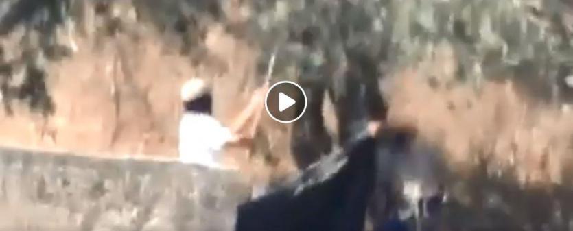 شاهد: مستوطنون يسرقون الزيتون في اراضي بورين قرب نابلس