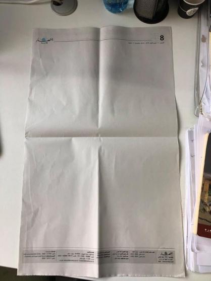 صدرت صحيفة النهار اللبنانية اليوم الخميس بصفحات فارغة في عددها الورقي ، فغطّى الأبيض صفحاتها الثماني. كما اكتسى موقعها الإلكتروني باللون الأبيض، بالإضافة إلى حساباتها على مواقع التواصل الاجتماعي.