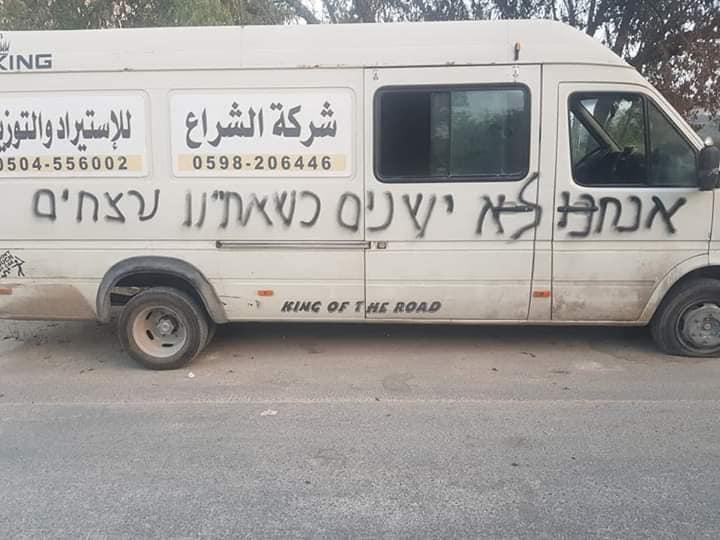 شعارات عنصرية خطها المستوطنون على مركبة لأحد المواطنين
