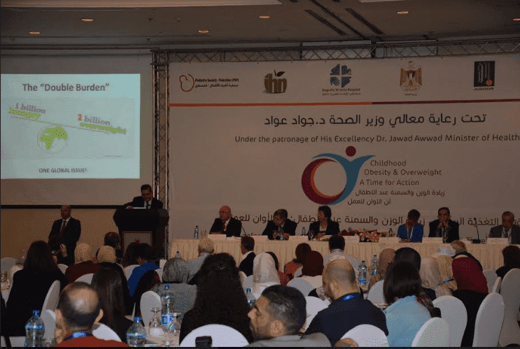 وسلط المؤتمرون الضوء على قضية زيادة الوزن والسمنة لدى الأطفال والمراهقين، حيث أجمع المشاركون في المؤتمر على أن مشكلة السمنة والتغذية غير السليمة لدى الأطفال تُعدّ واحدة من أهم التحديات التي تواجه التنمية الصحية والاقتصادية في فلسطين؛ حيث ارتفعت معدلات زيادة الوزن والبدانة عند الأطفال خلال سنوات المدرسة إلى 24% وهو ما يعد مؤشراً خطيراً على صحة أطفالنا.