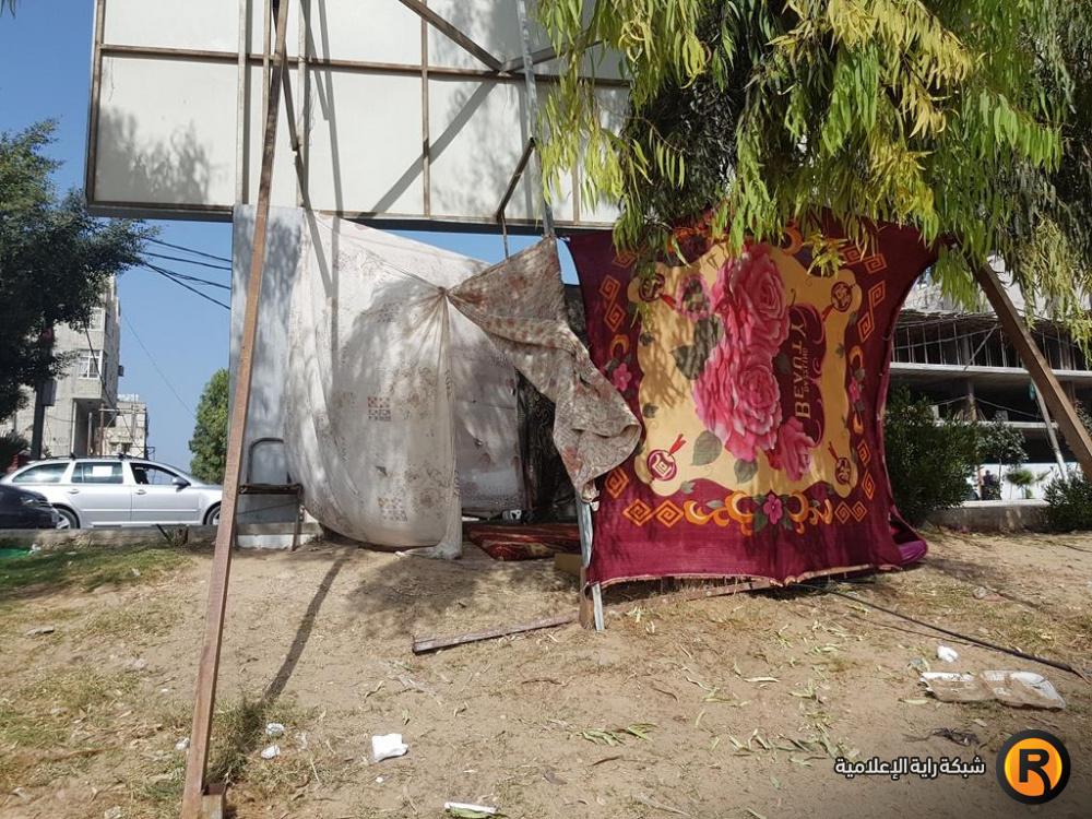 مراسل "راية" استوقفه مشهد أكثر من 5 خيام لا تبعد عن بعضها سوى أمتار قليلة، في تلك الساحة التي تحوّلت مؤخرا الى مأوى لمن لم يجد له مأوى، وسط تلك الظروف الاقتصادية القاسية؛ التي لم يشهدها الغزيون في السابق على الإطلاق.