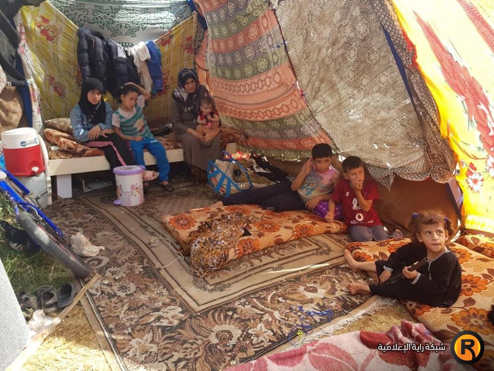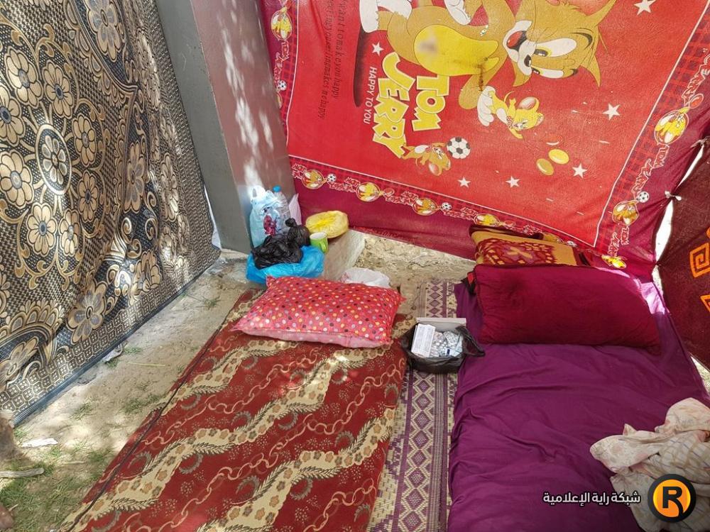 أسرة الكتناني لم تكن تتوقع في يوم ما أن يصل بها الحال هكذا (بين الأرض والسماء)، تقول ربة الأسرة: "لجأنا الى العيش في خيمة لا تصلح للعيش أبدا، حتى أن صاحب المنزل الذي كنا نسكن فيه حجز على الأثاث، ولم نتمكن من احضار الا القليل منه".
