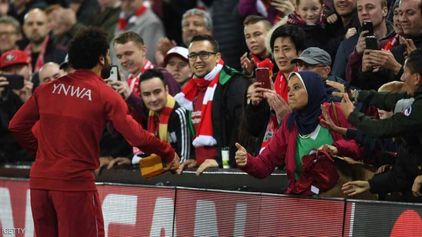 وتوجه محمد صلاح عقب نهاية المباراة إلى المدرجات ليحصل على هدية المشجعة التي كانت تحمل لافتة باللغة العربية، وقام النجم المصرى بإعطائها قميصه.