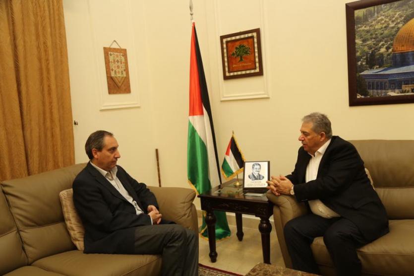 وبحث الطرفان قضية أمن واستقرار المخيمات الفلسطينية وعلى متابعة الاتصالات السياسية مع كل الأطراف من أجل المعالجة الجدية والنهائية للأوضاع في ظل الاستهداف الممنهج للقضية الفلسطينية ولقضية اللاجئين بشكل عام.