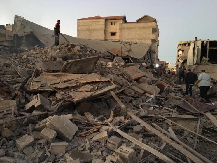 وأفاد مراسلنا، بأن الطيران الحربي الإسرائيلي شن غارة وسط مدينة غزة، أدت إلى تدمير بناية كاملة قيد الإنشاء مكونة من 4 طوابق، وإلحاق أضرار جسيمة في منازل وممتلكات المواطنين المجاورة.