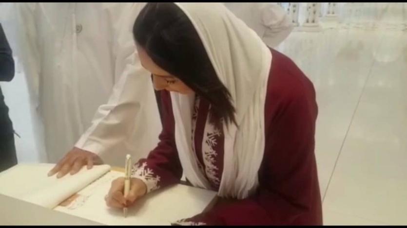 ووقعت ريغيف كأول شخصية سياسية إسرائيلية على سجل الزوار في المسجد، واختارت أن تفعل ذلك باللغة العربية وكانت ترتدي الزي التقليدي الإماراتي.
