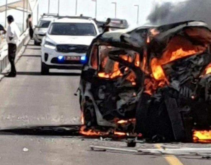 وجاء أن الحادث نجم عن تصادم مركبتين وجها لوجه، على شارع رقم (90) من منطقة البحر الميت باتجاه عين جدي، وأدى ذلك إلى اشتعال النيران بإحدى السيارتين.