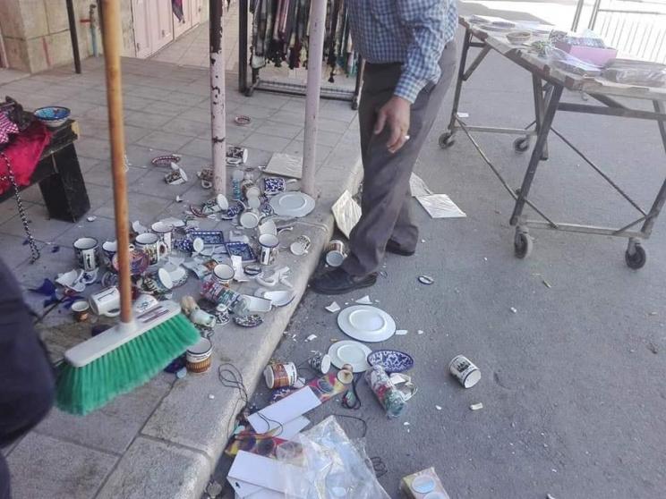 وطال الاعتداء المواطن عبد الرؤوف المحتسب، وحطم المستوطنون محلا تجاريا يعود له، لبيع التحف السياحية والهدايا التراثية والخزفية بالقرب من الاستراحة.