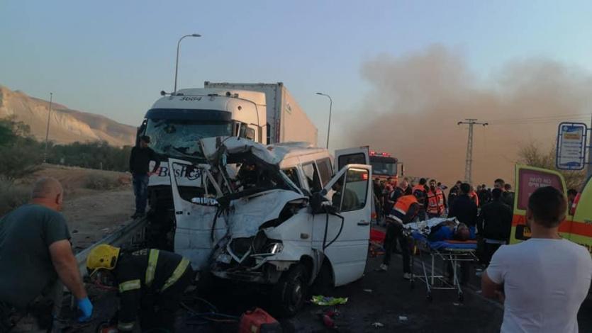 وفاة 7 عمال فلسطينيين بحادث مروع على طريق 90 قرب اريحا