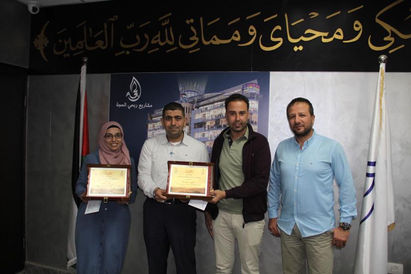 كرم المدير العام لشركة ربحي الحجة للعقار والاستثمار الحاج ربحي الحجة عدد من المهندسين العاملين لديه في المشاريع الاسكانية الحائزين على جائزة “المهندس المتميز”بنسختها الرابعة وذلك في مقر الشركة الكائن بمدينة رام الله، نظرا الى ما قدموه من جهود ملموسة خلال الفترة الماضية وحرصهم الدؤوب على مصلحة العمل