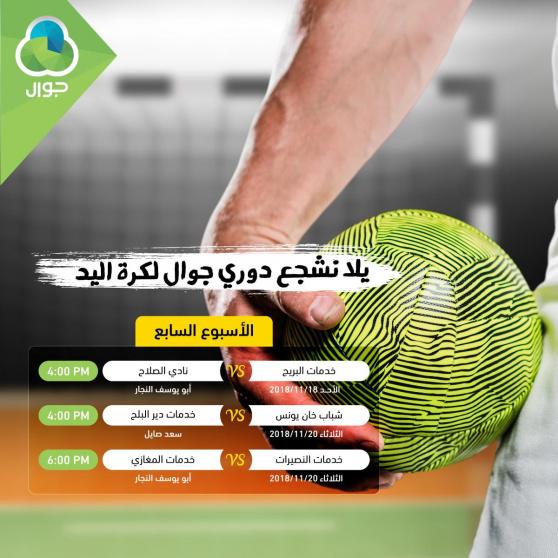 إلى ذلك أعلن الاتحاد الفلسطيني لكرة اليد بعلن من مباريات دوري جوال لكرة اليد في المحافظات الجنوبية وفقاً للجدول التالي