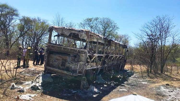 وأكد المتحدث باسم الشرطة، تشاريتي تشارمبا، في حديث إلى وكالة "فرانس برس" أن 42 حالة وفاة على الأقل جراء الحادث المأساوي، بينما نشرت وسائل إعلام محلية مشاهد الهيكل المتفحم للحافلة على طريق سريع يربط بين المعبر الحدودي مع جنوب إفريقيا ومدينة بولاوايو، ثاني أكبر مدن البلاد.