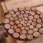 ويستخدم الشقيقان جذوع من خشب الأشجار بعد أن يتم تقطيعها على شكل حلقات دائرية، دون أن يتم إعادة تدويرها، لتظهر بشكل بيضاوي طبيعي، وباستخدام طلاء بني مخفف، يلون الشقيقان الجذوع الخشبية حتى تأخذ لون الخشب الطبيعي البرّاق.