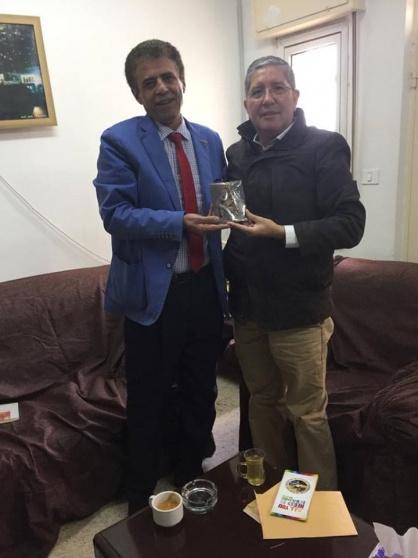 وقدم سعادة السفير هدية رمزية من الأعمال اليدوية والتي تمثل الفن الشعبي في بلاده الأكوادور، كما قدم الشاعر أحمد يعقوب مجموعته الشعرية (مدائح الكافور) باللغة الإسبانية الصادرة في مدريد مؤخراً، للسفير الأكوادوري كهدية رمزية.
